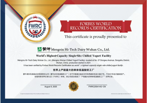 蒙牛低温武汉工厂于2021年正式投产,规划产线数量为22条。该工厂的审核流程严格规范,从发起申请,经过初审合格,再到认证复核,层层把关。发布会上,蒙牛集团党委副书记、高级执行总裁李鹏程表示,武汉工厂建成初期产能规模就位居亚洲前列,如今更是刷新世界纪录,不仅成为全球产能的领先者,还凭借智能化、绿色化、柔性化生产,开创了乳业新局面。此次福布斯认证,既是对蒙牛世界级产能的肯定,也是对“蒙牛酸奶、世界品质”的有力见证。